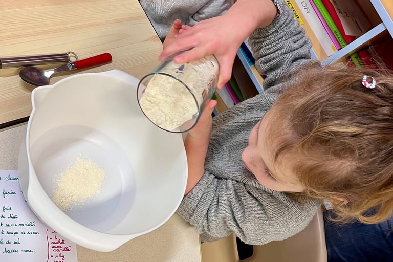 Nous partageons avec plaisir notre atelier cuisine, nous les 27 petits chefs friands de crêpes ! Nous fêtons avec joie la chandeleur, la fête des chandelles. Des crêpes rondes et dorées, à l’image du soleil … qui semble bien capricieux ces derniers temps ! Peu importe finalement, et vive la gourmandise !